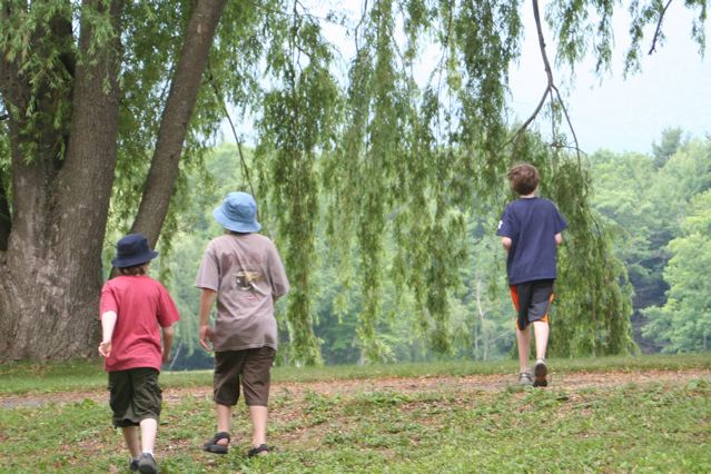 I take a few more pictures, then leave the boys to their adventures. Later, they will head for the pool, to toss themselves again and again down the twisty waterslide. They will walk to the barn and feed the rabbits and pigs, play baseball, climb the playground equipment and sit side by side in the dining room, buttering their own bread, pouring their own milk, weaving themselves in and out of the tangled knot of parents and grandparents, friends and family surrounding them on this late spring weekend.