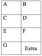 I then ask him to write that letter in the first box before moving on to B through G. The 8th box is filled with the word “extra.”