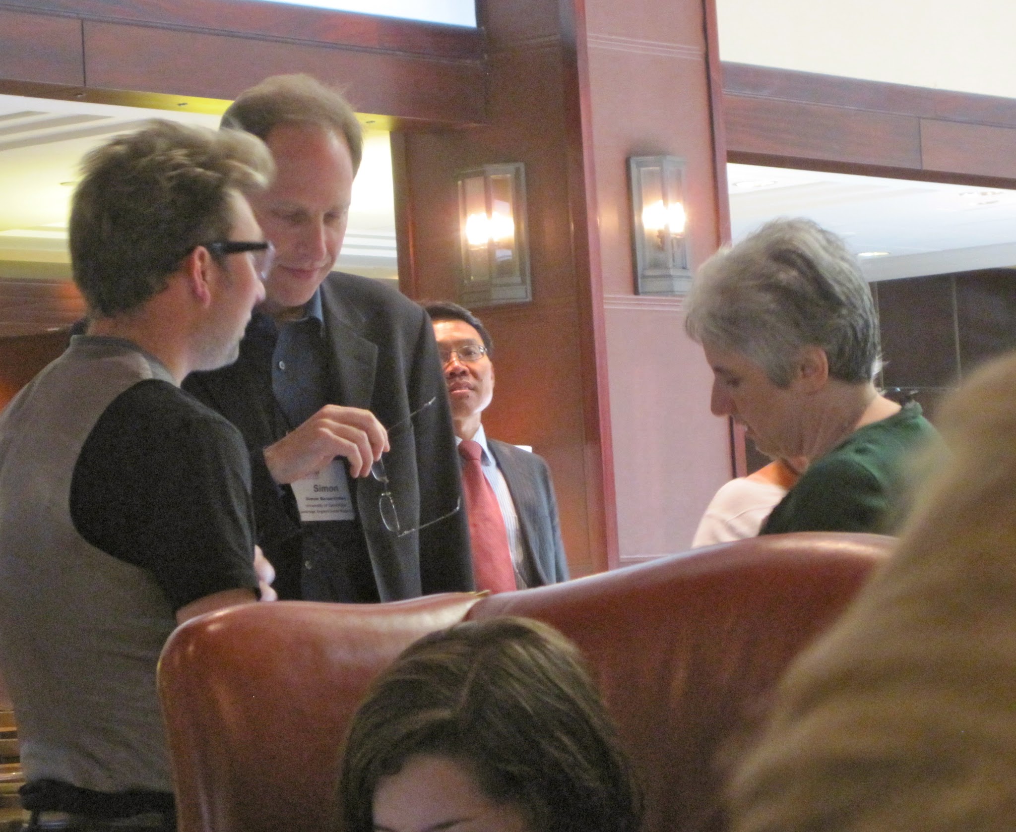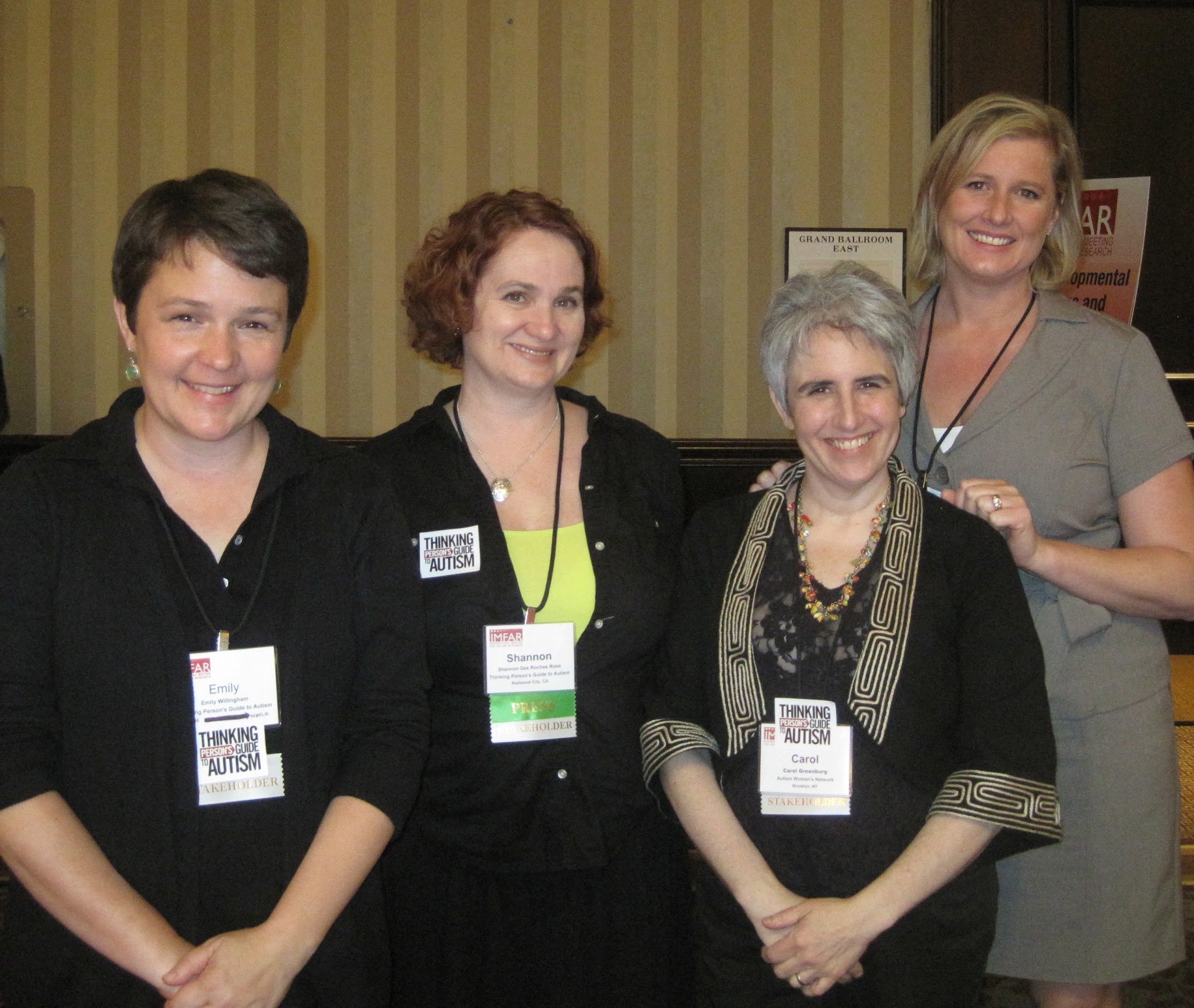 Our editors and contributors were constantly engaging with researchers and influencers regarding inclusion and other TPGA mission matters, and having intense discussions all over the conference — Carol with Simon Baron-Cohen and Autism Speaks’s Dana Marnane, Emily with John Elder Robison, Shannon and Jen with DSM-5 task force chair Sue Swedo — to whom we gave a copy of the TPGA book, and whom we think could gain much insight from reading our TPGA Slice of Life series. Several discussions led to interview agreements that we believe will enrich this site and your brains.