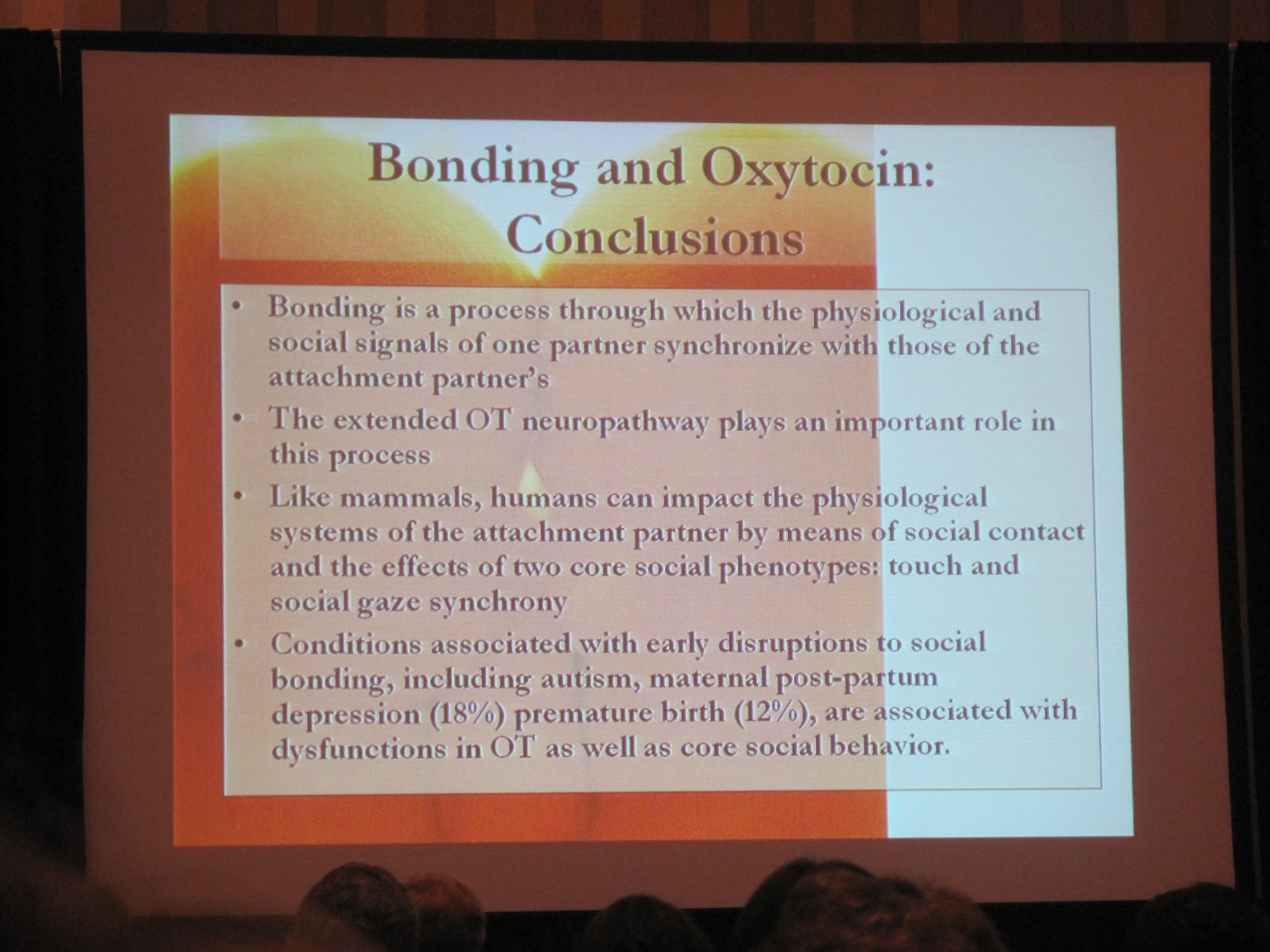 Sometimes the science elicited an “Oh please no,” as when Ruth Feldman’s keynote on Bio-Behavioral Synchrony and the Development of Social Reciprocity. When Dr. Feldman started talking oxytocin and points like: